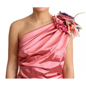 Dolce & Gabbana Pink Draped Midi Flower Applique Dress