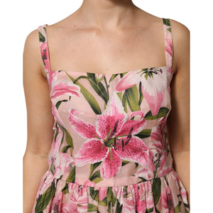 Dolce & Gabbana Pink Floral Lily Print Midi Sleeveless Dress