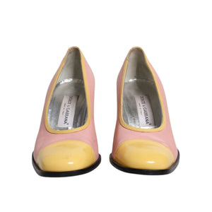 Dolce & Gabbana Pink Yellow Leather Block Heels Pumps Shoes