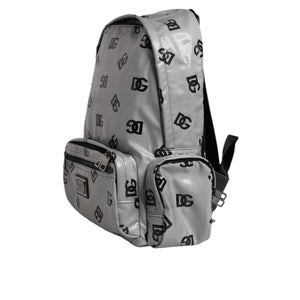 Dolce & Gabbana Polyester Gray Black DG Logo Plaque Backpack Bag