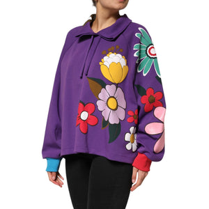 Dolce & Gabbana Purple Floral Print Cotton Long Sleeves Top