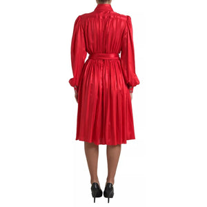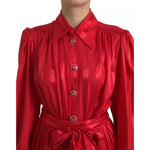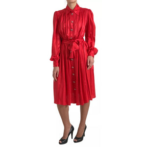 Dolce & Gabbana Red Button Down Belted Midi Satin Silk Dress
