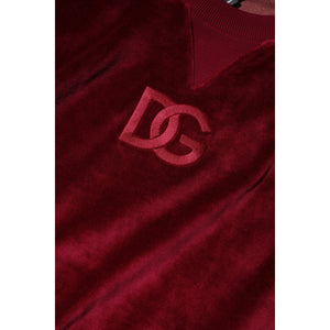 Dolce & Gabbana Red Cotton Velvet Crew Neck Pullover Sweater