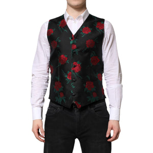 Dolce & Gabbana Red Floral Brocade Formal Men Waistcoat Vest