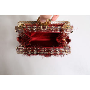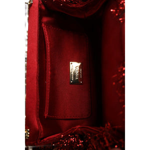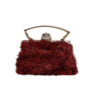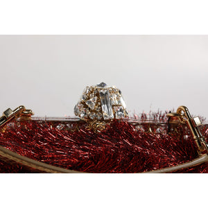 Dolce & Gabbana Red Gold Chain VANDA Tinsel Crystals Evening Clutch Bag