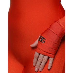 Dolce & Gabbana Red Nylon Turtleneck Bodycon Jumpsuit Dress