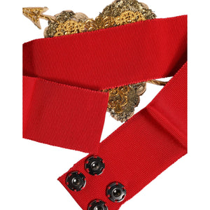 Dolce & Gabbana Red Stretch Wide Waist Heart Embellished Belt