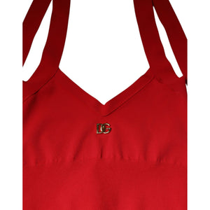 Dolce & Gabbana Red Viscose Sleeveless Halter Cropped Tank Top