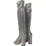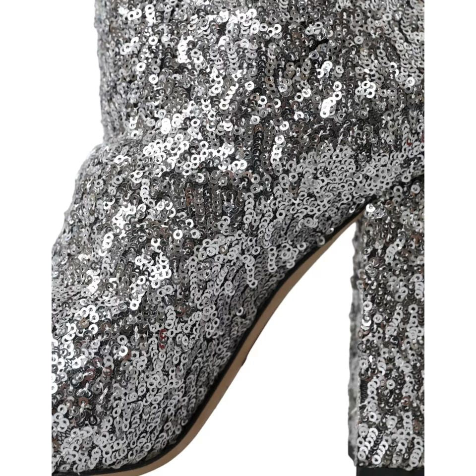 Dolce & Gabbana Silver Sequined High Boots Stretch Shoes