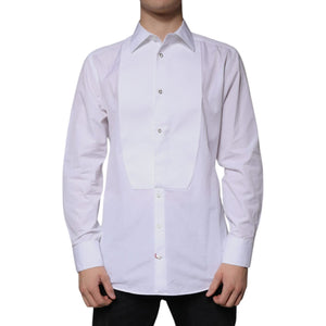 Dolce & Gabbana White Bib Cotton Poplin GOLD Men Formal Shirt