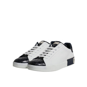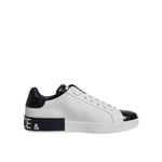 Dolce & Gabbana White Black Leather Portofino Sneakers Shoes