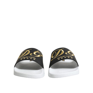 Dolce & Gabbana White Black Leather Sandals Beachwear Shoes