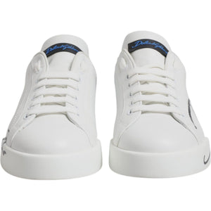 • Dolce & Gabbana White Blue Leather Logo Low Top Sneakers Shoes