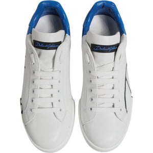Dolce & Gabbana White Blue Leather Logo Low Top Sneakers Shoes