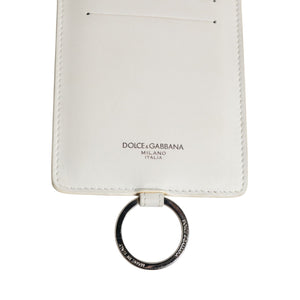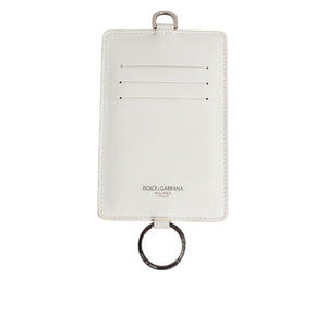 Dolce & Gabbana White Calf Leather Lanyard Logo Card Holder Men Wallet