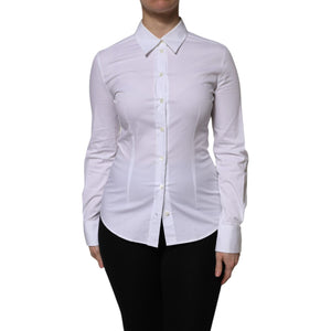 Dolce & Gabbana White Cotton Collared Long Sleeves Blouse Top