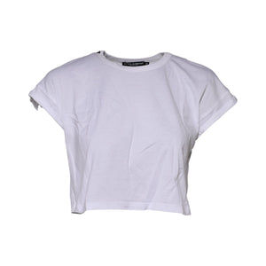 Dolce & Gabbana White Cotton Crew Neck Cropped Top T-shirt