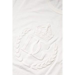 Dolce & Gabbana White Cotton DG Crown Embossed T-shirt