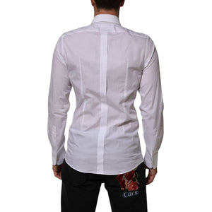 Dolce & Gabbana White Cotton DG Logo Pearl GOLD Formal Shirt