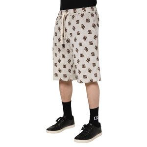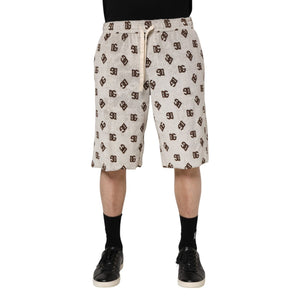 Dolce & Gabbana White Cotton DG Mania Print Men Bermuda Shorts