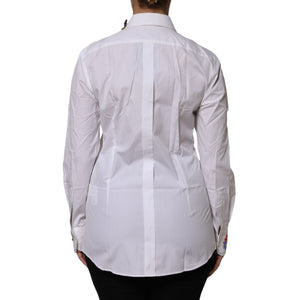 Dolce & Gabbana White Cotton Floral Embellished Shirt Top