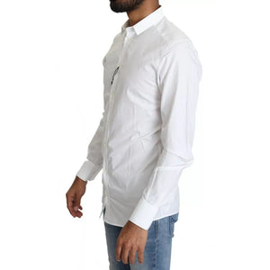 Dolce & Gabbana White Cotton Formal Dress Top GOLD Shirt