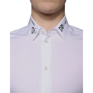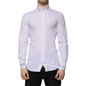 Dolce & Gabbana White Cotton Logo Formal Men GOLD Dress Shirt