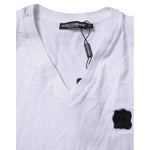 Dolce & Gabbana White Cotton Logo Patch V-neck Tee T-shirt