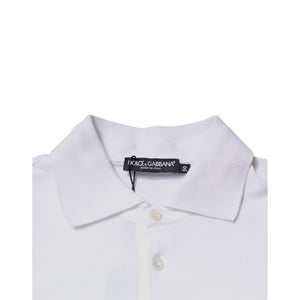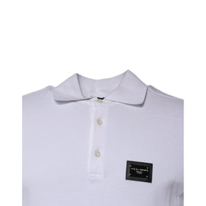 Dolce & Gabbana White Cotton Logo Plaque Collared Polo T-shirt