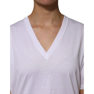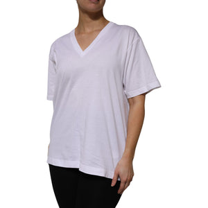 Dolce & Gabbana White Cotton Short Sleeves V-neck T-shirt
