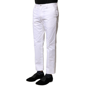 Dolce & Gabbana White Cotton Straight Logo Men Pants