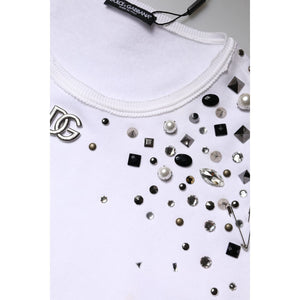 Dolce & Gabbana White Embellished Long Sleeve Cropped Sweater