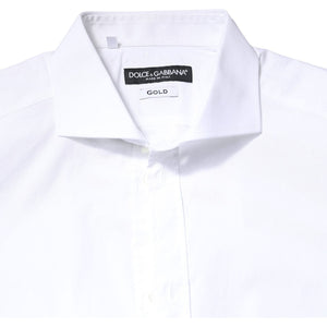 Dolce & Gabbana White GOLD Cotton Long Sleeves Dress Shirt
