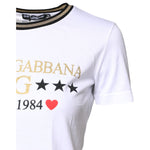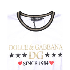 Dolce & Gabbana White Graphic Print Cotton Crew Neck T-shirt