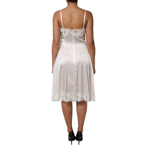 Dolce & Gabbana White Lace DG Logo Silk Dress Sleepwear