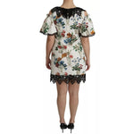 Dolce & Gabbana White Lace Floral Vase Shift Mini Dress