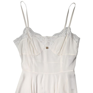 Dolce & Gabbana White Lace Gold DG Logo Silk Dress Sleepwear