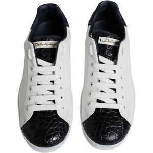 Dolce & Gabbana White Leather Logo Portofino Sneaker Shoes