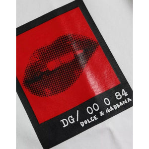 تي شيرت رجالي قطني بطبعة شفاه حمراء بيضاء من دولتشي آند غابانا