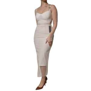 Dolce & Gabbana White Sheer Tulle Bustier Bodycon Midi Dress