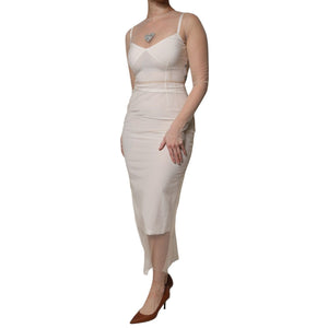 Dolce & Gabbana White Sheer Tulle Bustier Bodycon Midi Dress