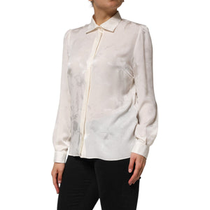 Dolce & Gabbana White Silk Long Sleeves Collared Shirt Top