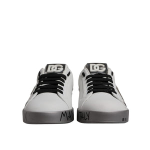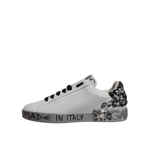 • Dolce & Gabbana White Silver Crystal Logo Portofino Sneakers Shoes
