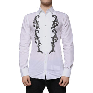 Dolce & Gabbana White Slim Fit Baroque GOLD Men Dress Shirt