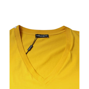 Dolce & Gabbana Yellow Cotton V-neck Short Sleeves T-shirt