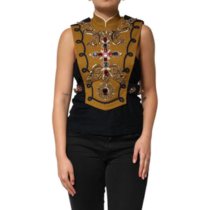 Dolce & Gabbana Yellow Crystal Cross Runway Vest Jacket Top