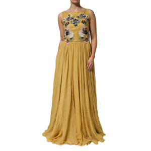 Dolce & Gabbana Yellow Silk Floral Embroidered Maxi Dress