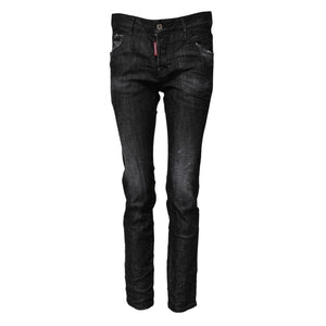 Dsquared² Black Washed Cotton Mid Waist Skinny Jeans