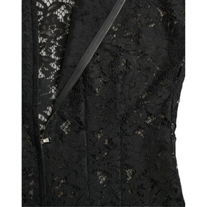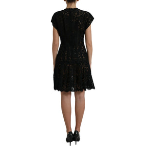 فستان قصير أنيق من دولتشي آند غابانا باللون الأسود من الدانتيل المزهر