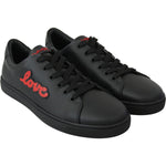 انطلق بأناقة مع هذه الأحذية الرياضية الرائعة المصنوعة من قبل دولتشي آند غابانا الشهيرة. تتميز كل زوج منها بحرفية إيطالية عالية، حيث يضمن متانة وراحة لا مثيل لها. تتميز هذه الأحذية الرياضية الجلدية السوداء بقلب أحمر لامع وتفاصيل شعار دقيقة، مما يجسد الفخامة مع لمسة من السحر المرح. مثالية لإضافة لمسة راقية إلى مظهرك الكاجوال.
